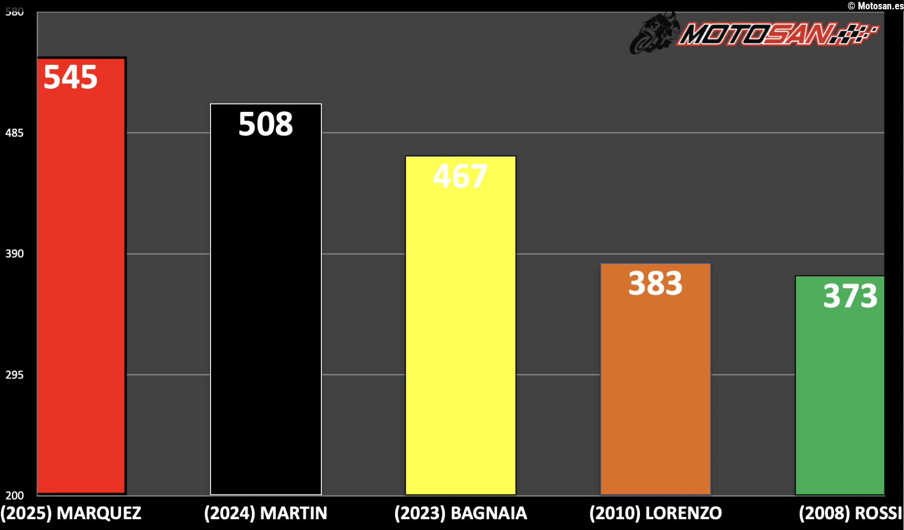 Motosan.es25/01/2026 15:00TOP 5 campeones de MotoGP con más puntos, Marc Márquez establece nuevo récord... Leer más en Motosan.es